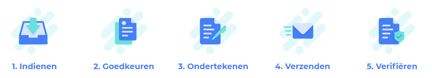 Zoals onze klanten dagelijks ondervinden draait Verifieer om veel meer dan enkel de digitale handtekening. Naast het digitaal ondertekenen van documenten kunnen zij ook documenten goedkeuren, verzenden, online bewaren en verifieerbaar stellen. Bovendien hoeven documenten niet meer afgedrukt te worden, hoeven ze niet fysiek naar de ondertekenaar gebracht te worden en hoeven de ondertekenaars niet aanwezig te zijn om te ondertekenen.